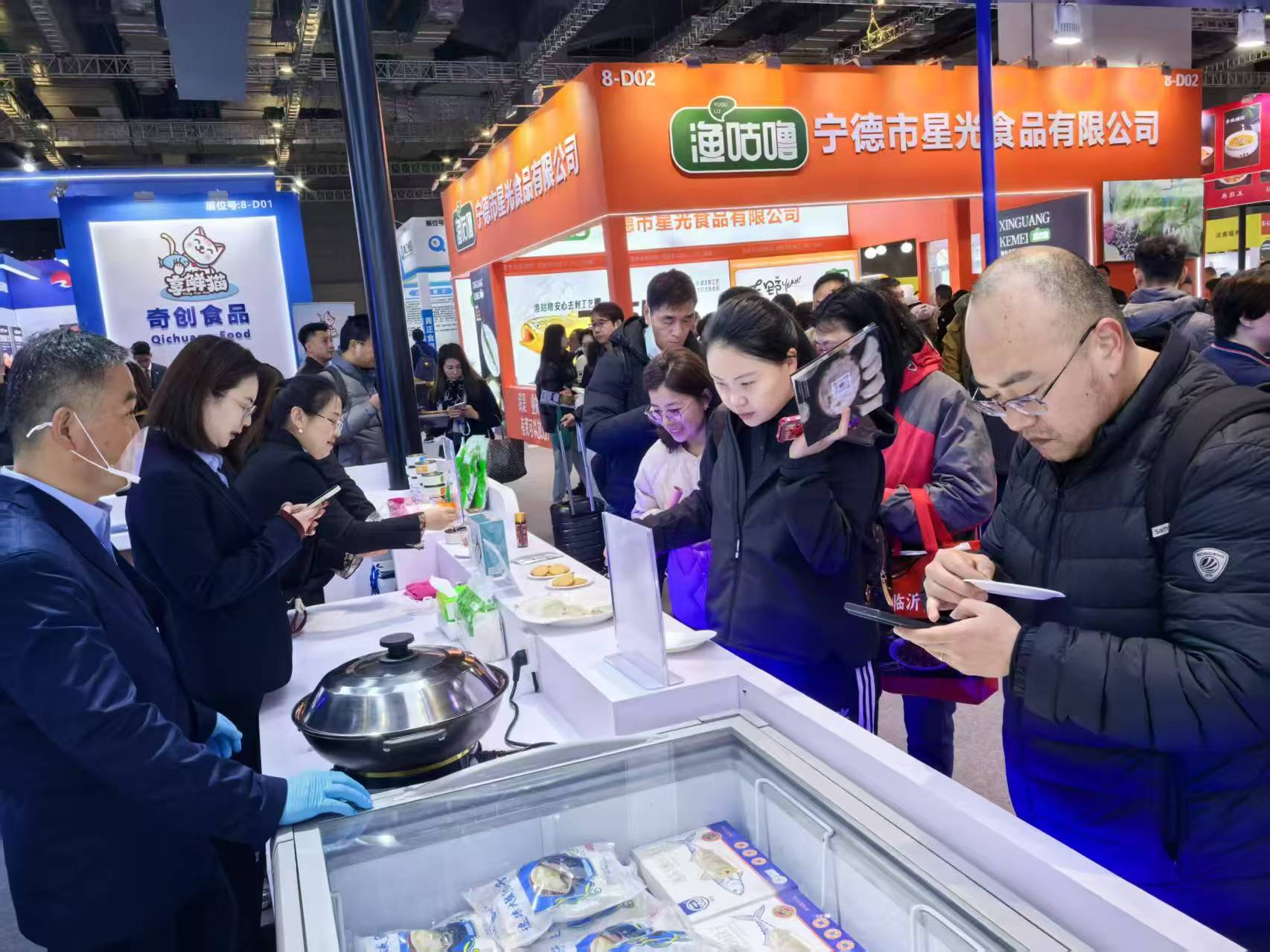 在展會現(xiàn)場,宇王集團(tuán)帶來的鲅魚水餃以其鮮美的口感和精致的包裝征服了眾多食客。一位來自上海的觀眾表示:“鲅魚水餃的口感非常獨特,肉質(zhì)鮮嫩,餃子皮薄而有韌性,完全超出了我的預(yù)期!”而烤魚則以地道的風(fēng)味和創(chuàng)新的呈現(xiàn)方式吸引了大量觀眾排隊試吃,現(xiàn)場氣氛熱烈。不少觀眾在品嘗后紛紛表示,無論是口感還是包裝設(shè)計,都體現(xiàn)了宇王集團(tuán)對高品質(zhì)的追求。除了鲅魚水餃和烤魚,宇王集團(tuán)的罐頭產(chǎn)品也備受關(guān)注。