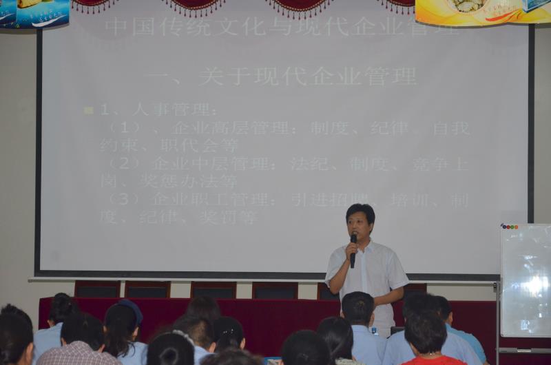 2016年8月27日上午,宇王集團在海洋生物館二樓大會議廳舉行管理干部培訓(xùn),公司全體管理干部參加培訓(xùn)。威海晚報前編輯部鞠世強主任擔任主講。培訓(xùn)上,鞠主任對中國傳統(tǒng)文化中的儒家、道家、墨家思想進行了講解,結(jié)合現(xiàn)代企業(yè)管理,深入闡述了管理干部在企業(yè)中應(yīng)當展現(xiàn)的素質(zhì)與方法,此次培訓(xùn)規(guī)范了公司管理干部的責(zé)任意識,進一步維護了公司的管理水準。