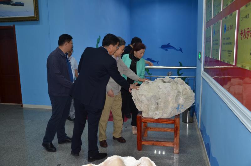 在宇王集團(tuán)海洋生物科技館,胡院士興致盎然的觀察了宇王集團(tuán)展出的海洋生物珍品和藝術(shù)品,對于硨磲和珊瑚兩類珍品進(jìn)行了細(xì)致的詢問。隨后,胡院士一行參觀了宇王集團(tuán)海洋生物工程有限公司的高科技現(xiàn)代化生產(chǎn)車間,對于嚴(yán)謹(jǐn)?shù)?/span>生產(chǎn)流程和加工工藝表示了高度的贊揚(yáng),并提出了自己對于海洋科技化與食品安全的見解。