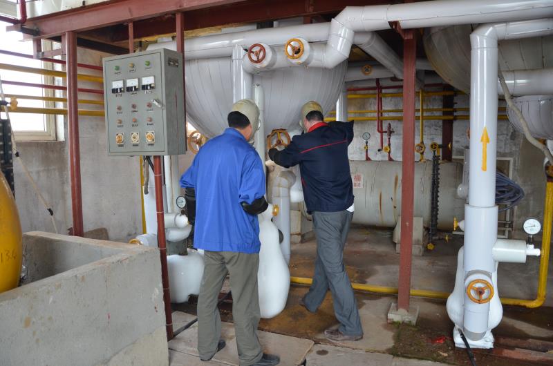 液氨泄露應急搶修演練針對園區(qū)內(nèi)的制冷設備存在的液氨泄漏風險進行模擬維修操作,分為機房外圍戒備、人員疏散、制冷設備維修三個單元。機房工作人員和維修人員處理應急事件的能力得到了進一步的加強,做到不打無準備之仗,把有可能存在的生產(chǎn)風險降到最低。